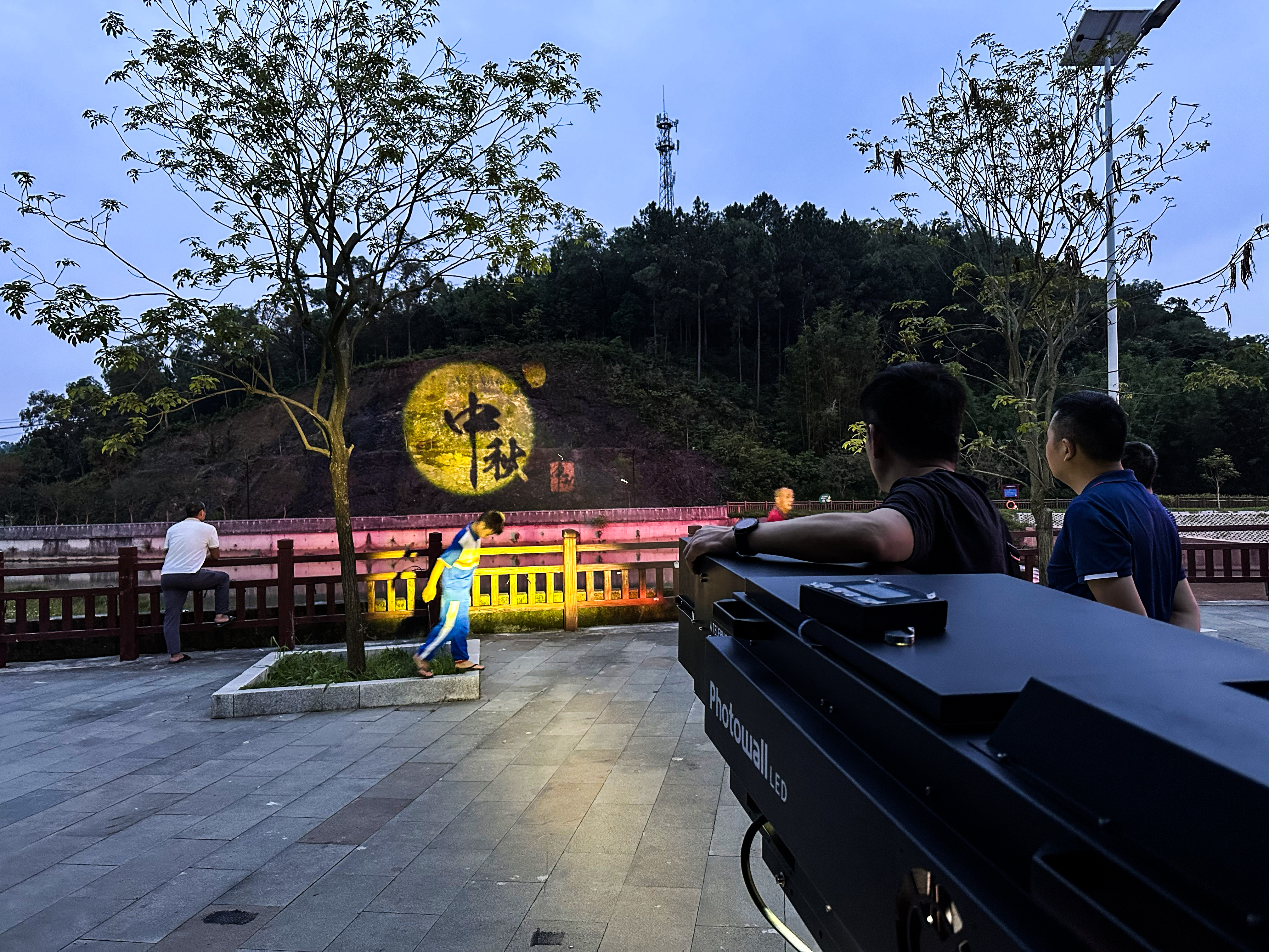 河壩旁山體亮化投影,投影距離90米,投影面積約25*25m